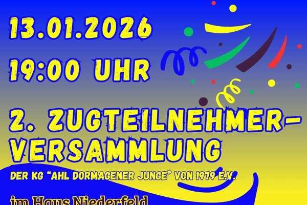 | Fr. 16.01.2026, 20:00-23:00: | Auftritt 20.30 Uhr Teil 1: Tanzsterne, Garde, Kinderprinzessin Teil 2: TTG, Dreigestirn Teil 3: Männerballett,PriFü ˋs, Elferrat, Vorstand, Gardekommandant, Präsident Arche Rheinfeld Verantw.: Aretz Andreas Auftritt wird gesplittet! |
